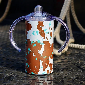 This fun Acid Wash Cowprint Sippy Cup is for the little Cowgal on the go! You will love this leak proof, easy to wash sippy cup.