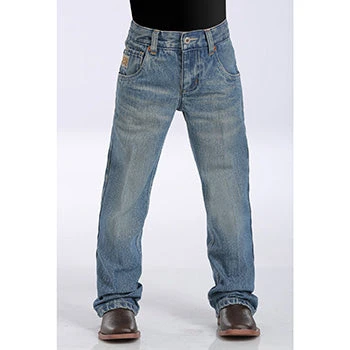 These jeans are perfect for the little man in your life. They are a medium stonewash, have an adjustable waistband and feature a thick wave-stitch embroidery on the back pockets.