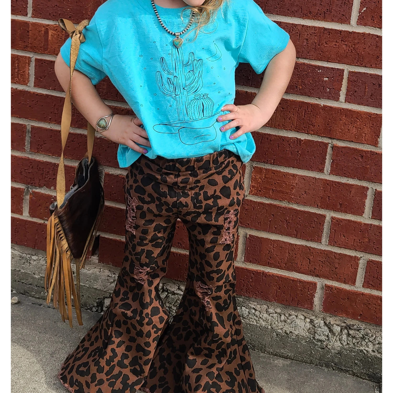 If your little one is a fashionista, then these Distressed Leopard Flares Bells are simply a Must Have!