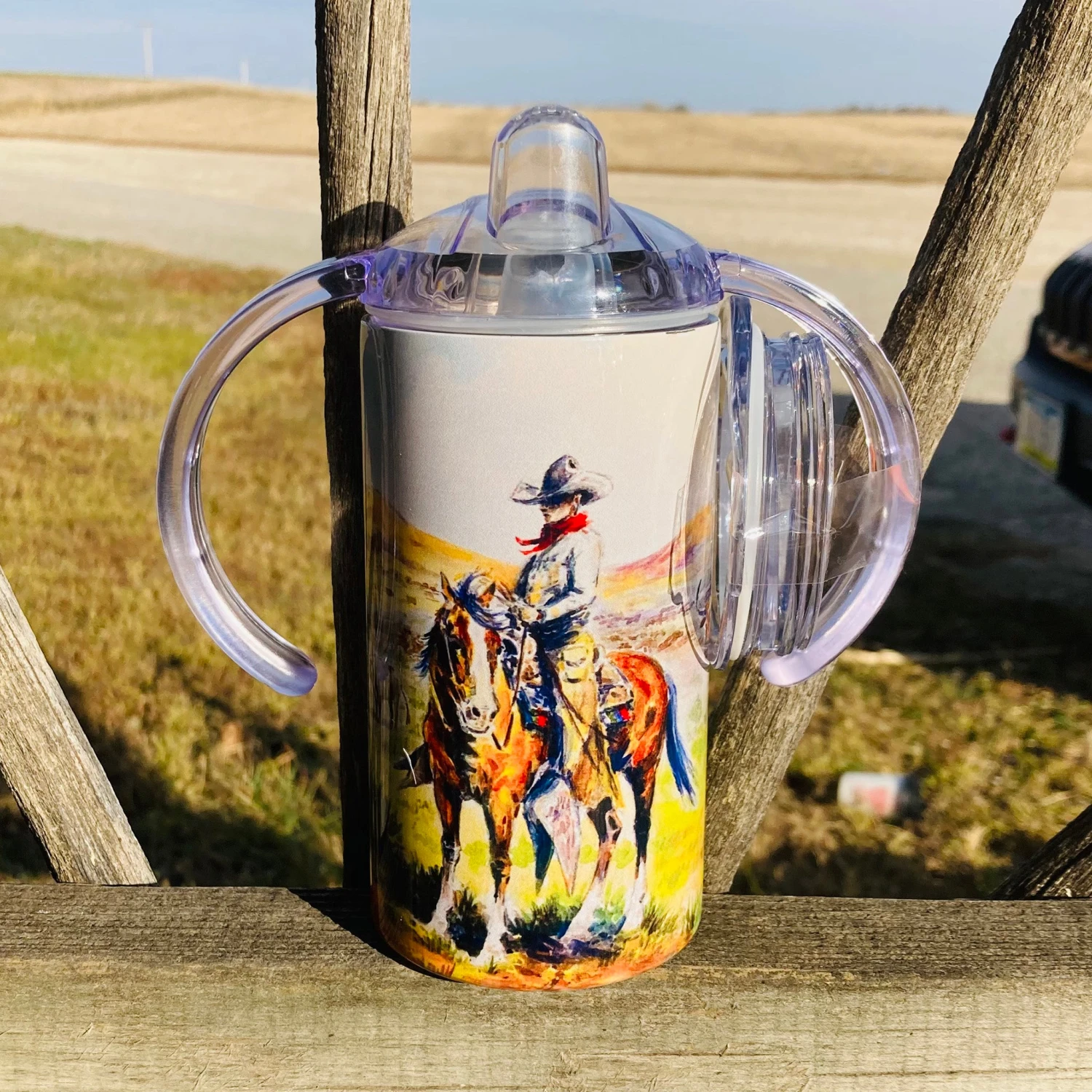 For the little ranch hand in your life this “ranchin out west” tumbler is perfect! You will love this leak proof, easy to wash sippy cup!