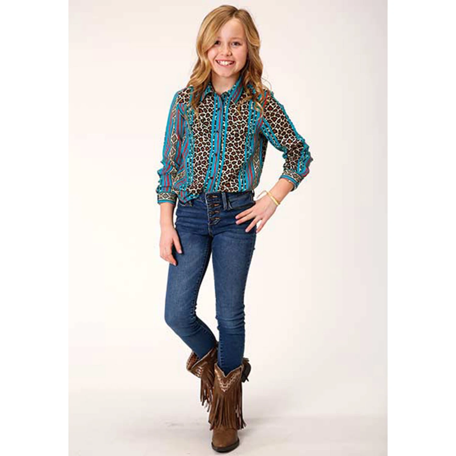 The perfect competition shirt for your little cowgirl! This roper serape striped shirt is absolutely beautiful and will look great in the arena.