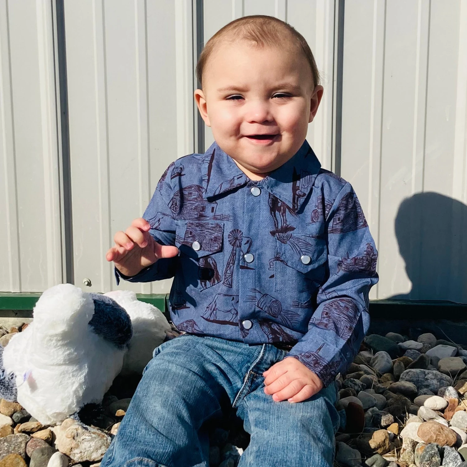Shea Baby knocked it out of the park with this cute farm print themed button down long sleeve for your littlest man!Â